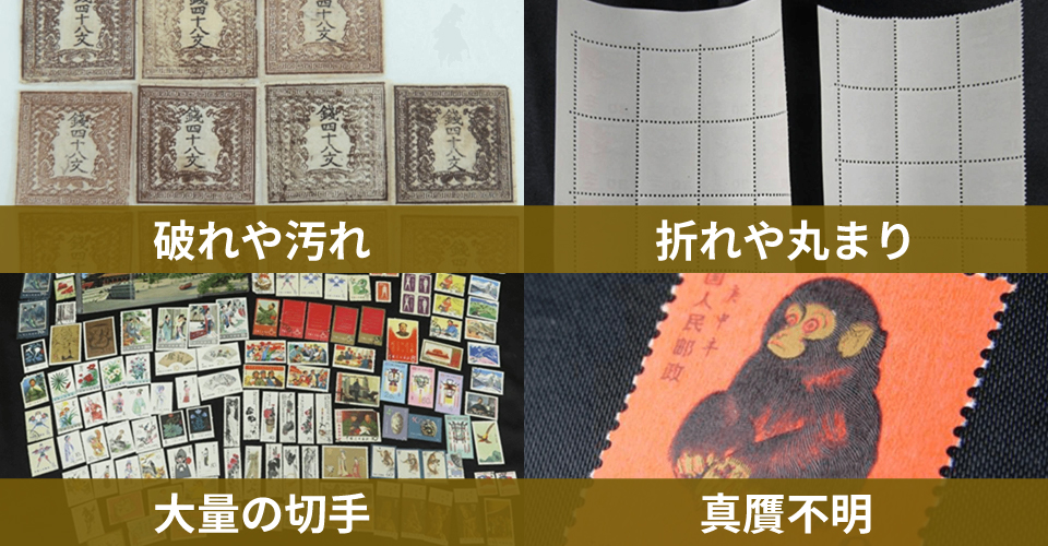 経験豊富だからこそ、破れや汚れのある、状態が悪い切手でも、価値のあるものを見逃しません!